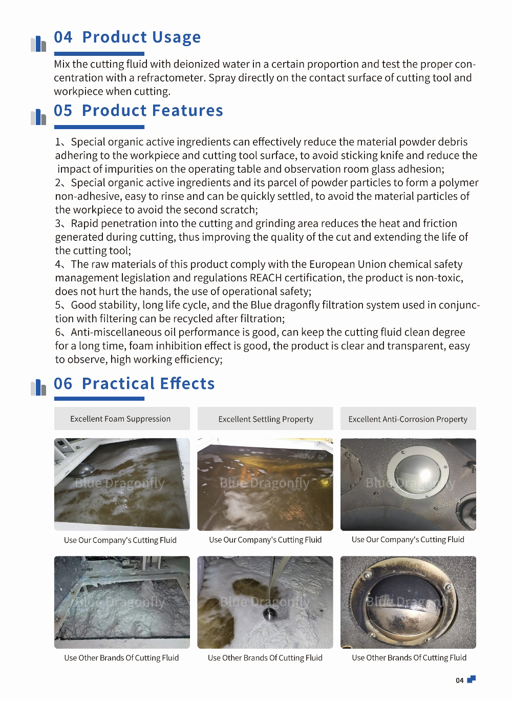 It is suitable for the cooling and lubrication of fine grinding, coarse grinding and cutting of various soft, hard and brittle optical glass/resin/PC.